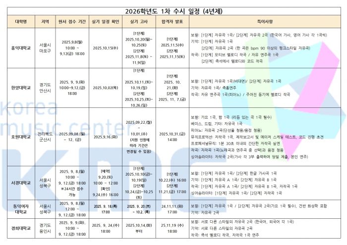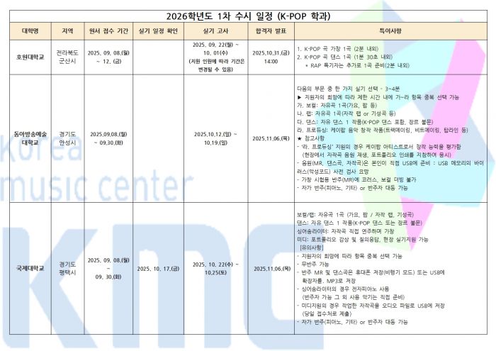 2026학년도 실용음악과 / K-POP과 수시 1차 입시요강