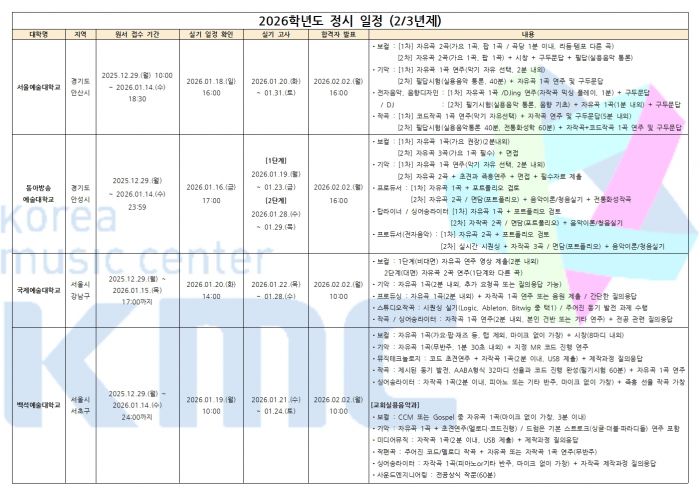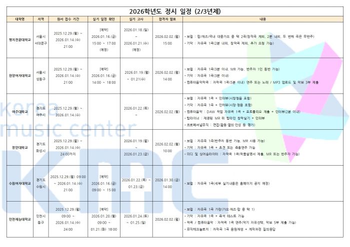 2026학년도 실용음악과 / K-POP과 수시 2차 입시요강