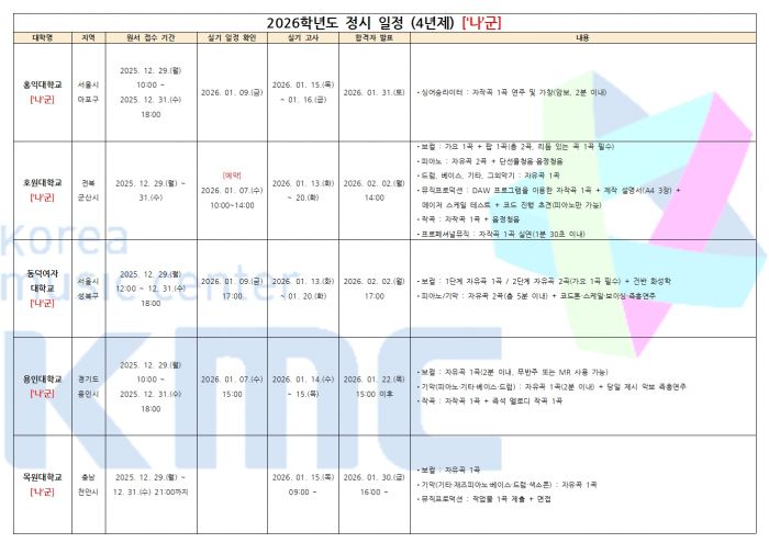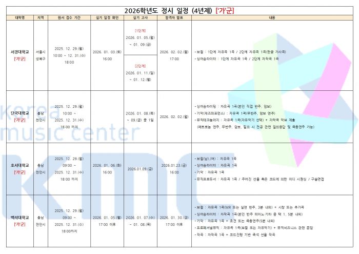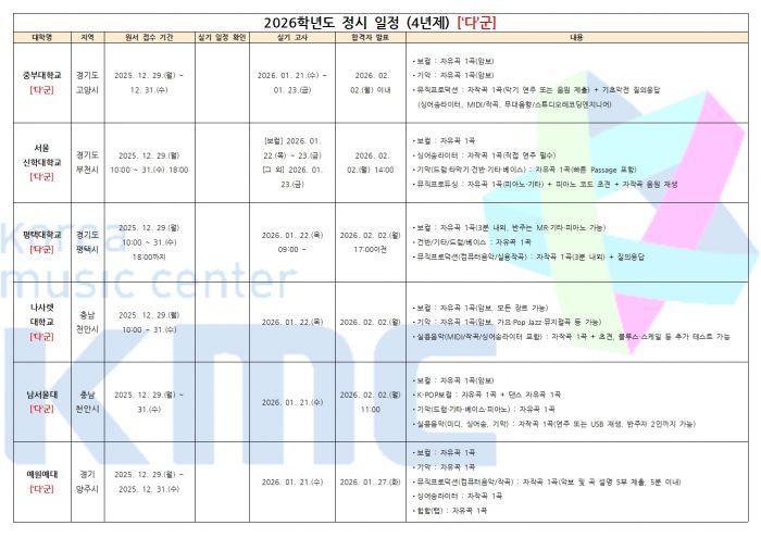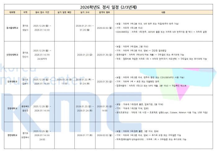 2026학년도 실용음악과 정시 입시요강